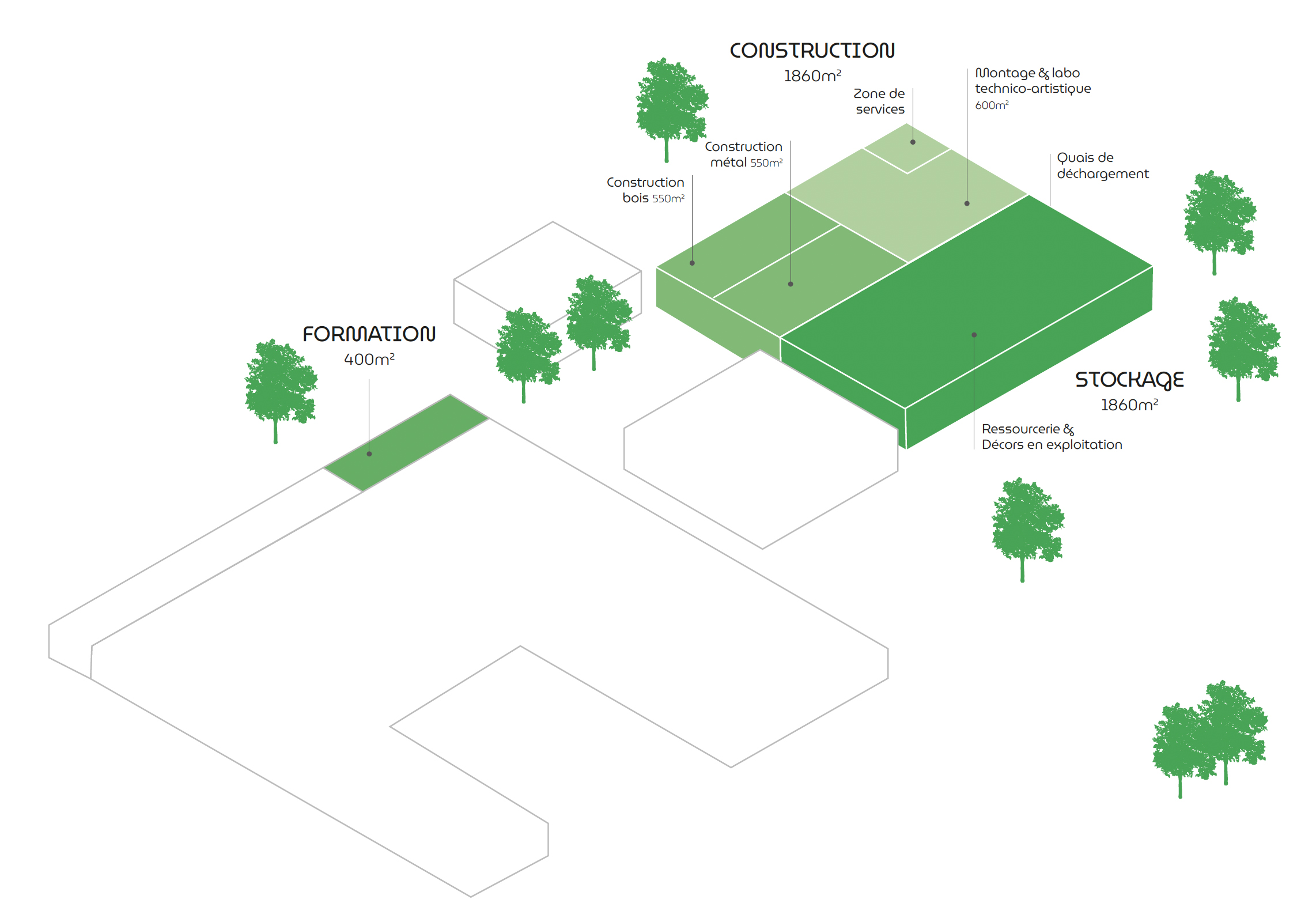 Situé à Manage, dans le Hainaut, le Pôle de mutualisation de services et ressources techniques est un outil collectif et durable de partage des moyens techniques du spectacle vivant. Initié par le Théâtre National Wallonie-Bruxelles, il propose un lieu ouvert aux artistes, aux compagnies et aux opérateurs des Arts de la scène en FWB pour la construction de scénographies, le stockage et la formation des professionnel·les du secteur.